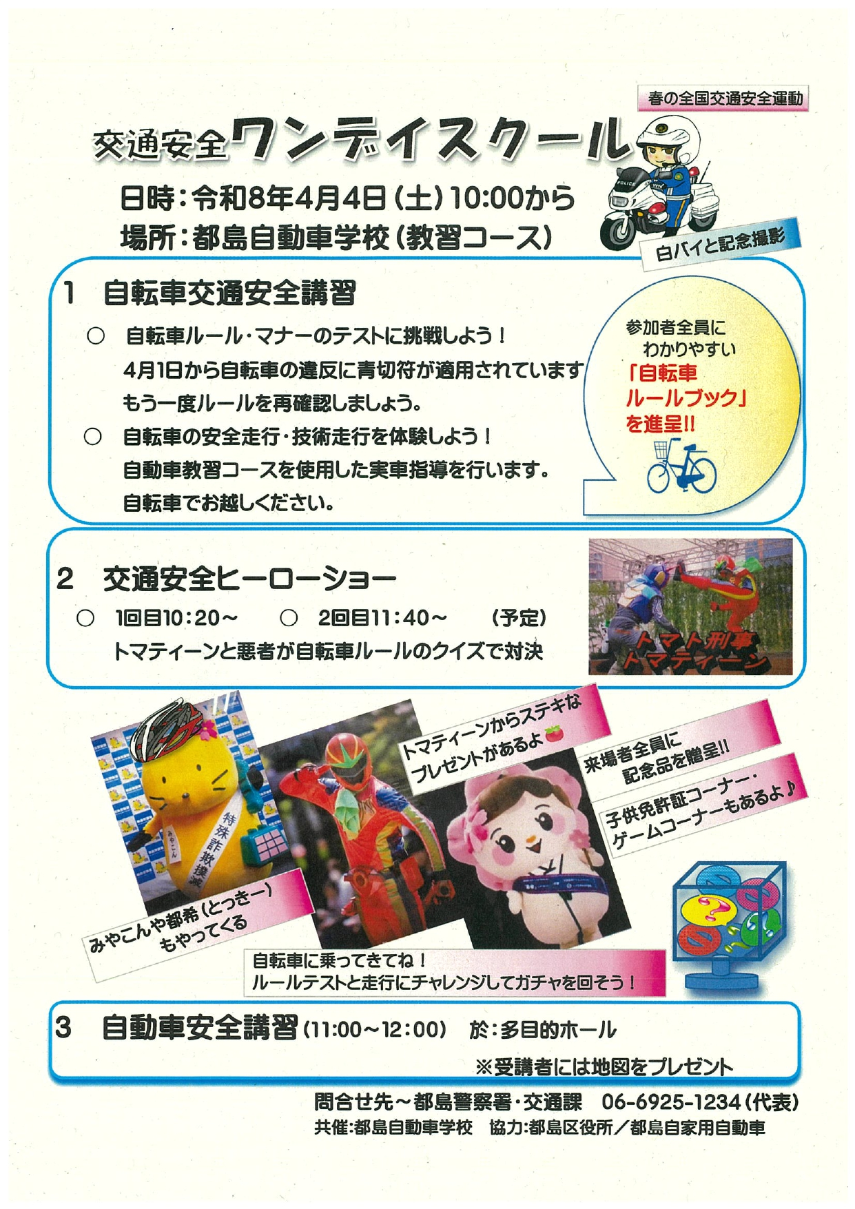 令和8年4月4日(土)ワンデースクールについて CATEGORY : お知らせ 2026.03.26 令和8年4月4日(土)10時~12時まで都島警察署主催によるワンデースクールを実施いたします。 多くの方のご来校お待ちしております。