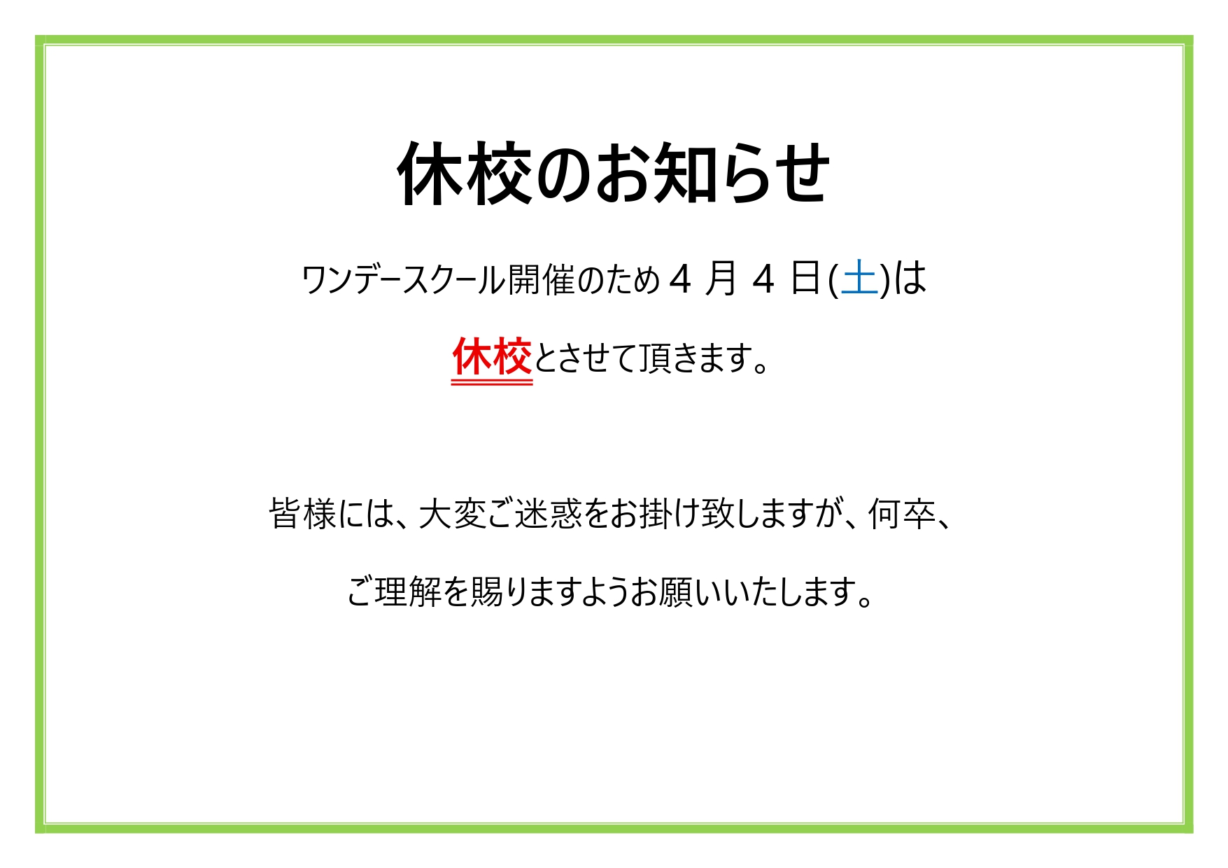 臨時休校のおしらせ